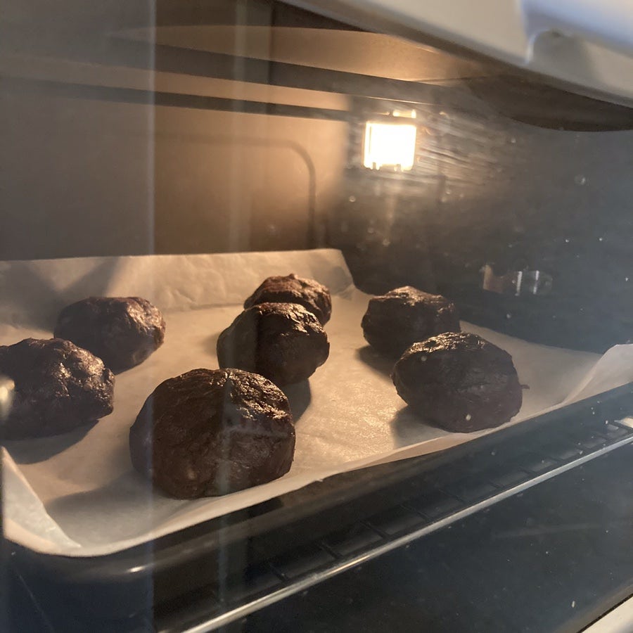 쿠키가 적당히 퍼지면서 마시멜로우가 살짝 녹아 나오면 완성!