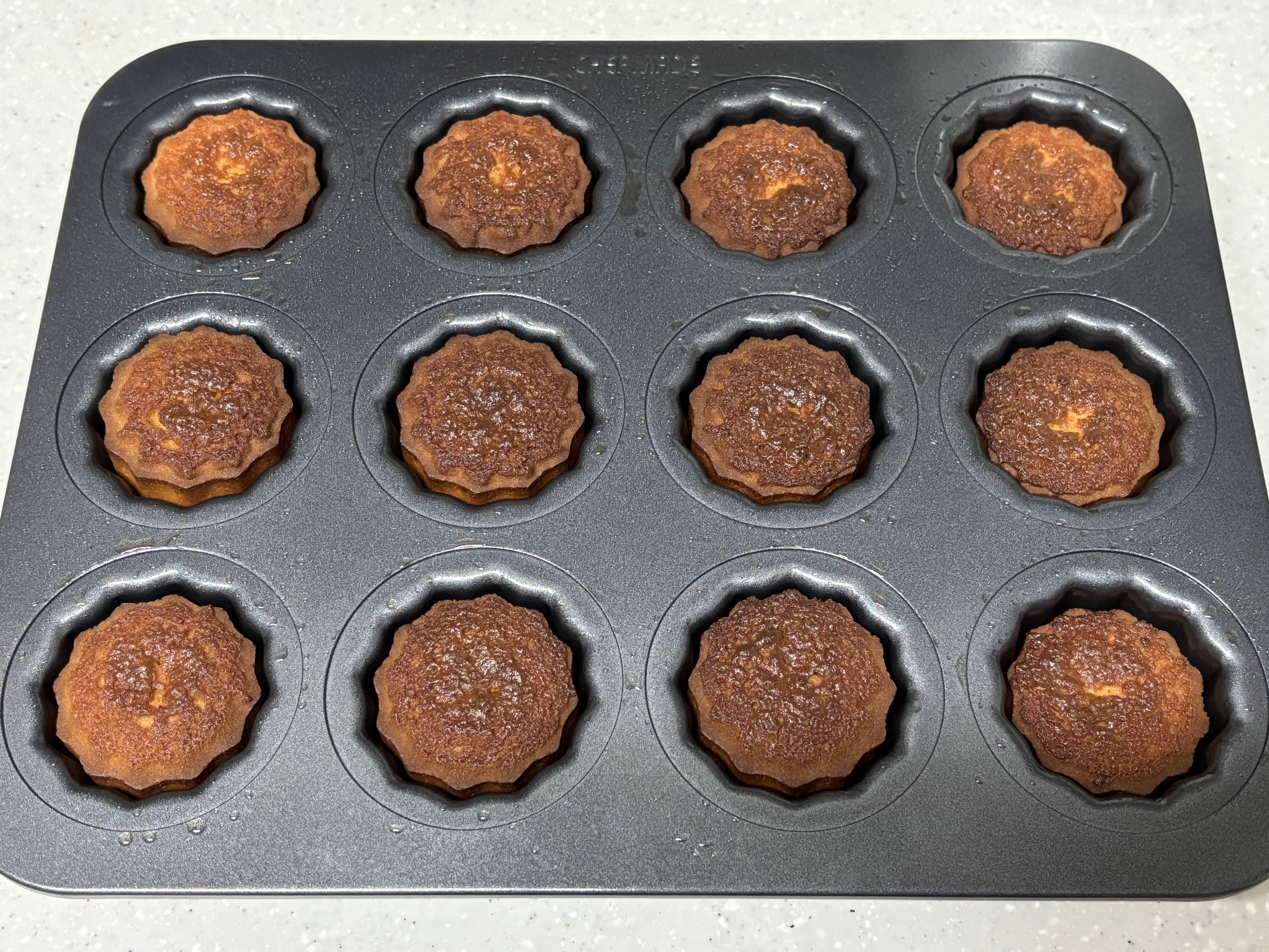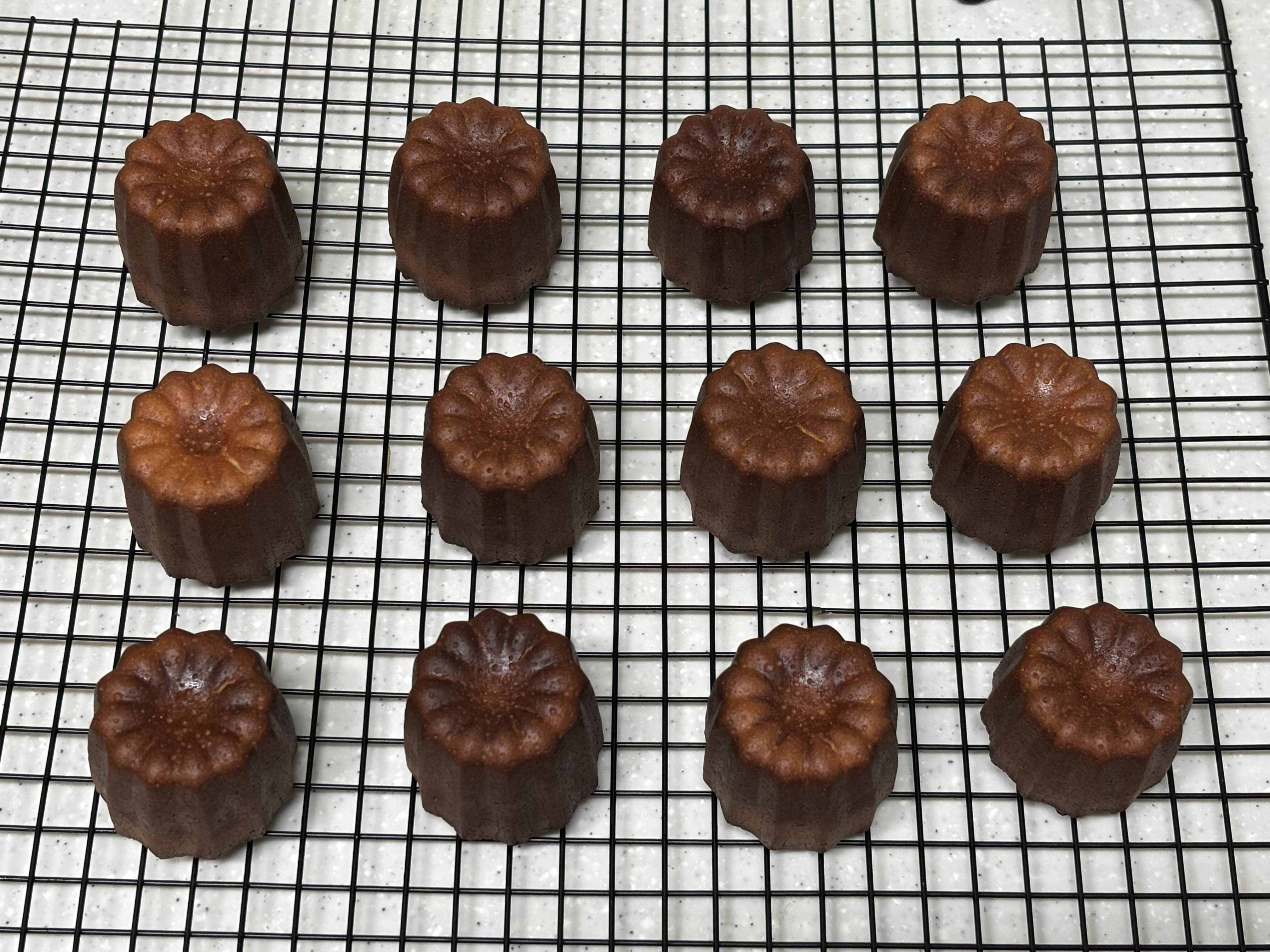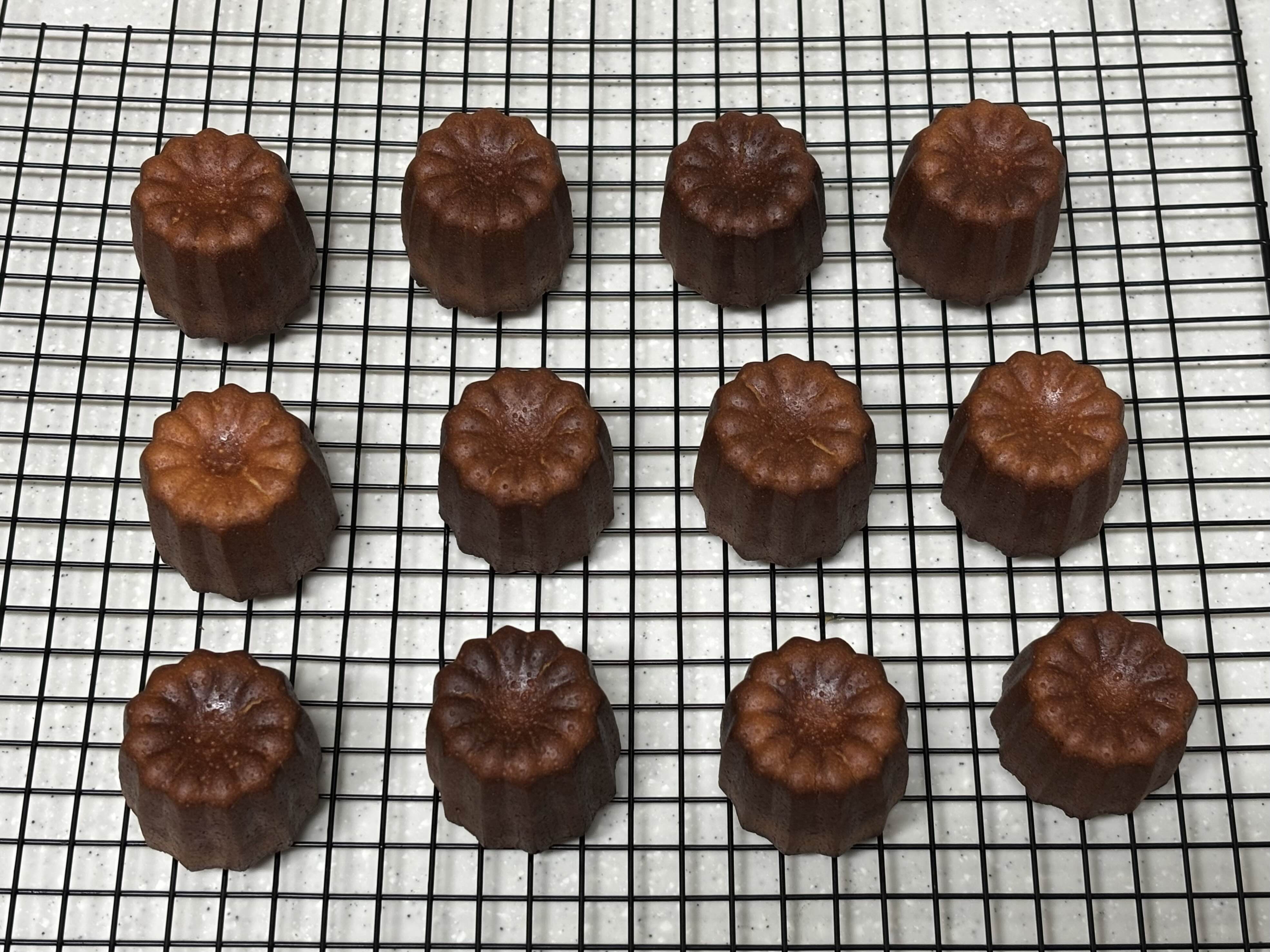 구운 까눌레는 꺼내자마자 먹지 말고 충분히 식혀야 겉바속쫀한 식감이 완성돼요!